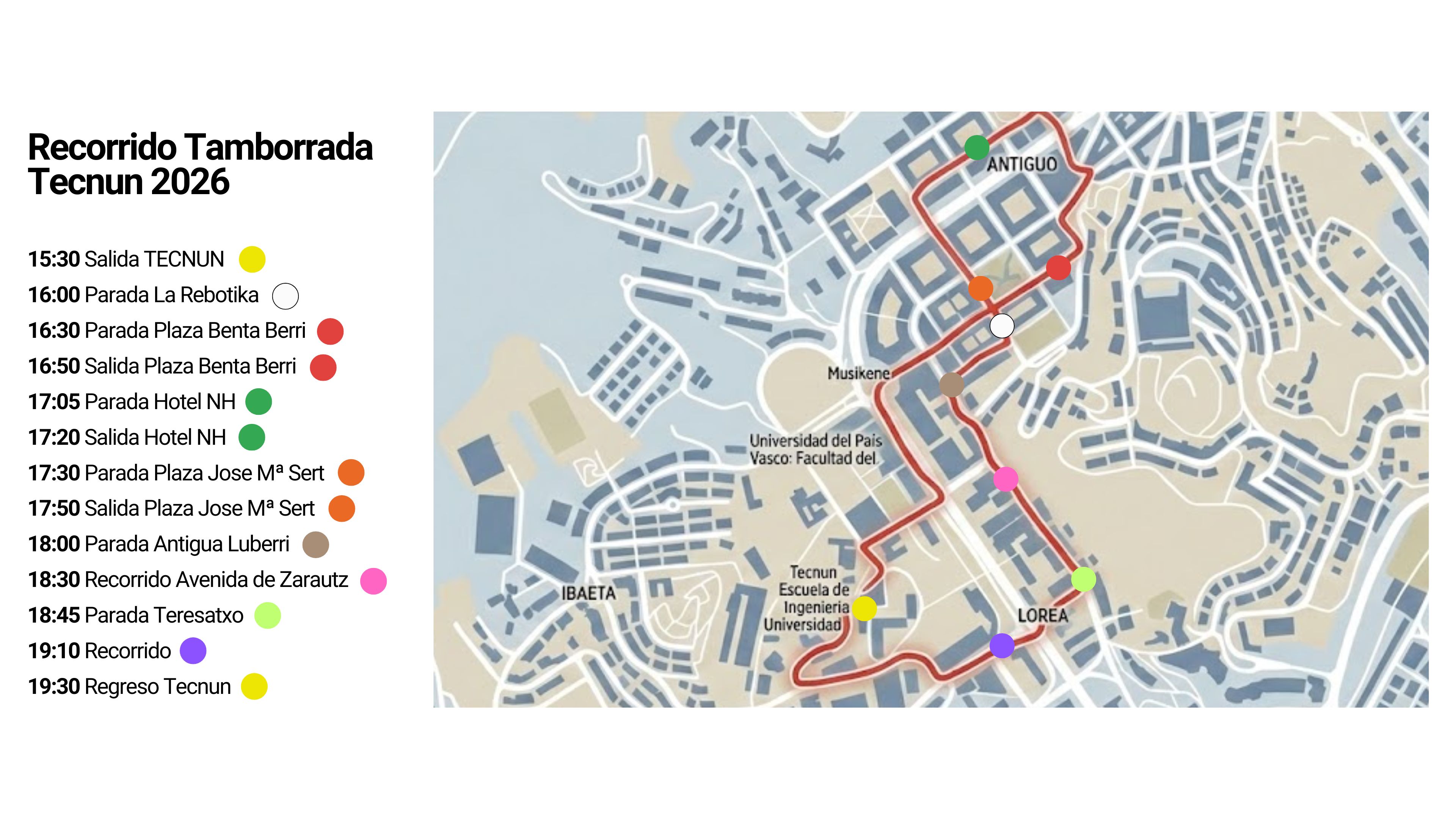 On January 20, 2026, 114 people participated in the ninth edition of the Tecnun Tamborrada. Once again, participants paraded through the streets of Antiguo in a parade whose pathway sample down this page. Likewise, in Madrid, employees and students celebrated this tradition on January 16 at the University of Navarra's graduate school, while alumni did so on January 22 at the Txoko Gastroalumni.