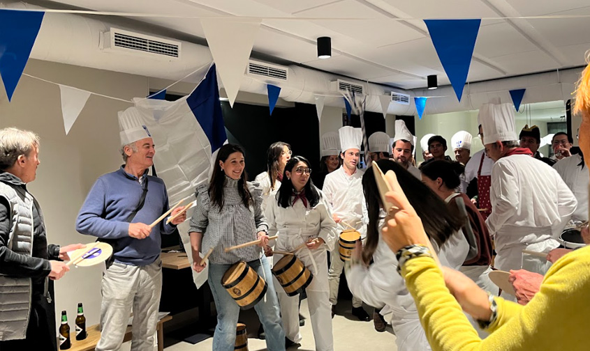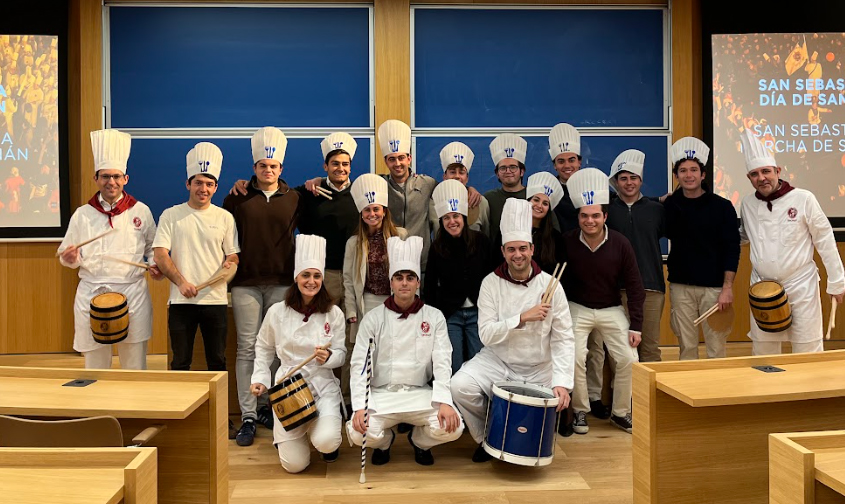 Once again, and now a tradition since 2021, on Friday, January 16, a group of five people—professors, employees, and students—livened up the Graduate School of the University of Navarra by performing the traditional Tamborrada marches. The workshop serves as a prelude to the celebration of San Sebastián Day and also as a farewell to the students who completed their semester the campus during the previous months.
