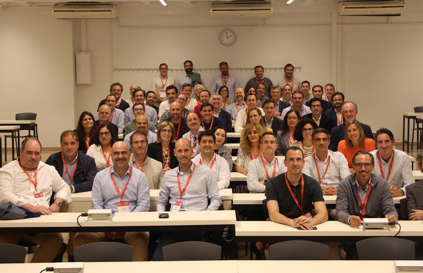 At the end in the auditorium, Professor Juan Flaquer shared with the attendees his traditional mathematical joke-joke. Afterwards, in front of the main façade of Tecnun, the group photo was taken. The workshop concluded with an aperitif that brought together all the participating alumni in a relaxed atmosphere of reunion.