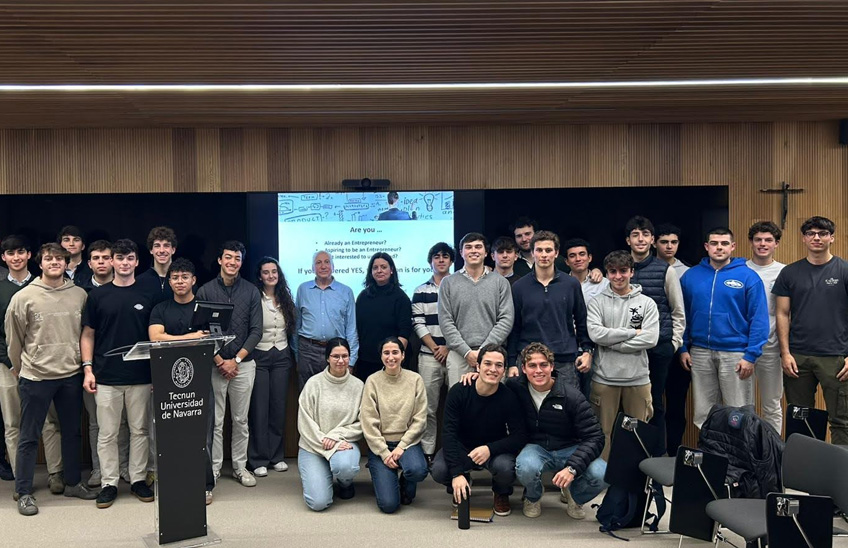 Forty students from Tecnun participated last Friday, February 13, at 12 noon in the session "From Engineering to MIT: How to Become an Innovator and Entrepreneur," taught by industrial engineer and MIT master's degree holder Gustavo Bottan in the Degrees classroom Degrees School of Engineering. The session was organized by the Tecnun Gipuzkoa EntrepreneurshipChair and the Entrepreneurship Club, and was attended by the project director at BIC Gipuzkoa, Amaia Fernández de las Heras.