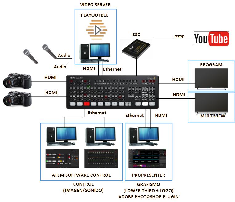 Description and objectives: The goal of this project is to integrate a set of software and hardware tools to implement an audiovisual production center based on a semi-professional ATEM mixer.